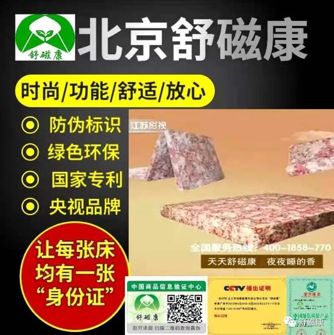 它的面料考究,提花刺繡,上面有舒磁康標識。就象我們穿的毛衣,如果是化纖的,在脫的時候,是不是會有靜電,靜電偷走了我們的負電荷,使紅細胞聚集,對我們的健康危害很大。而舒磁康地磁床墊,一是防靜電,再一個圖案非常漂亮,所有人都喜歡牡丹花,它的立體感和層次感都非常強。有直觀的防偽作用。